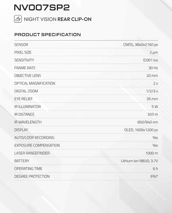 PARD NV007SP2 4K LRF dienas/nakts redzamības uzlika (ar tālmēru)
